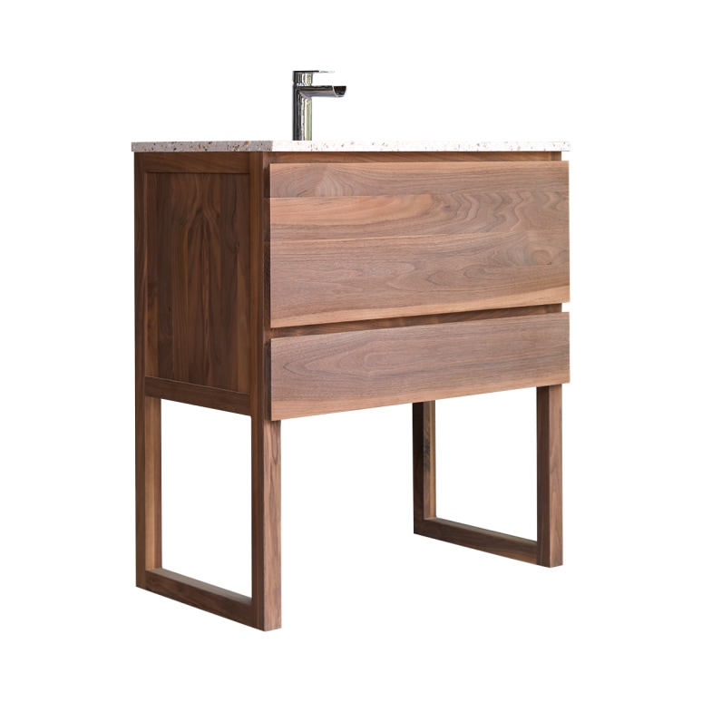 Badezimmerschrank aus Nussbaum massiv und rosa Premium-Terrazzo 80 cm