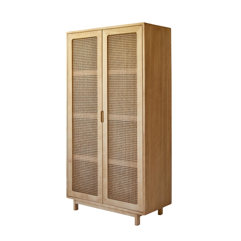 Kinderschrank aus Ulme massiv und Rattangeflecht