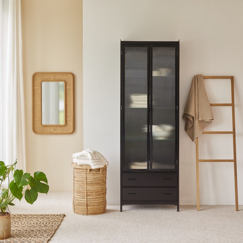 2 Glastüren, die zu 4 Fächern führen: