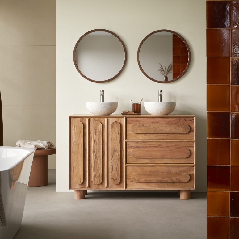 Waschtischunterschrank aus massivem Akazienholz 120 cm