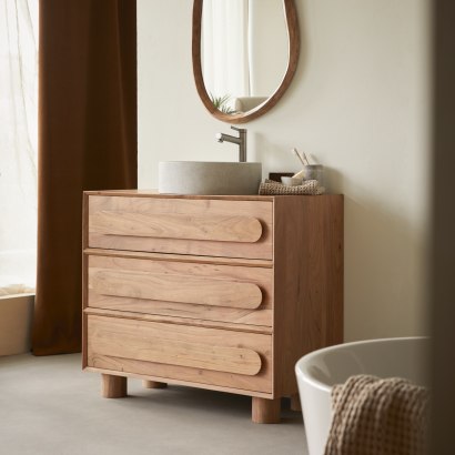 Waschtischunterschrank aus massivem Akazienholz 90 cm