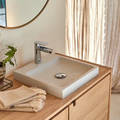 Quadratisches Waschbecken aus Premium-Terrazzo White