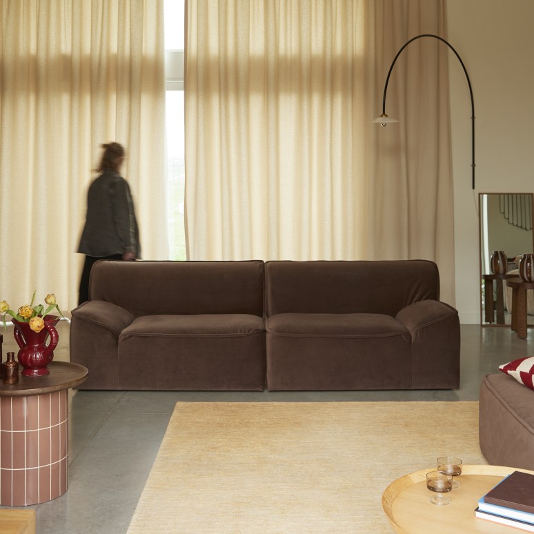Modulares 2-Sitzer-Sofa mit Armlehnen aus braunem Stoff