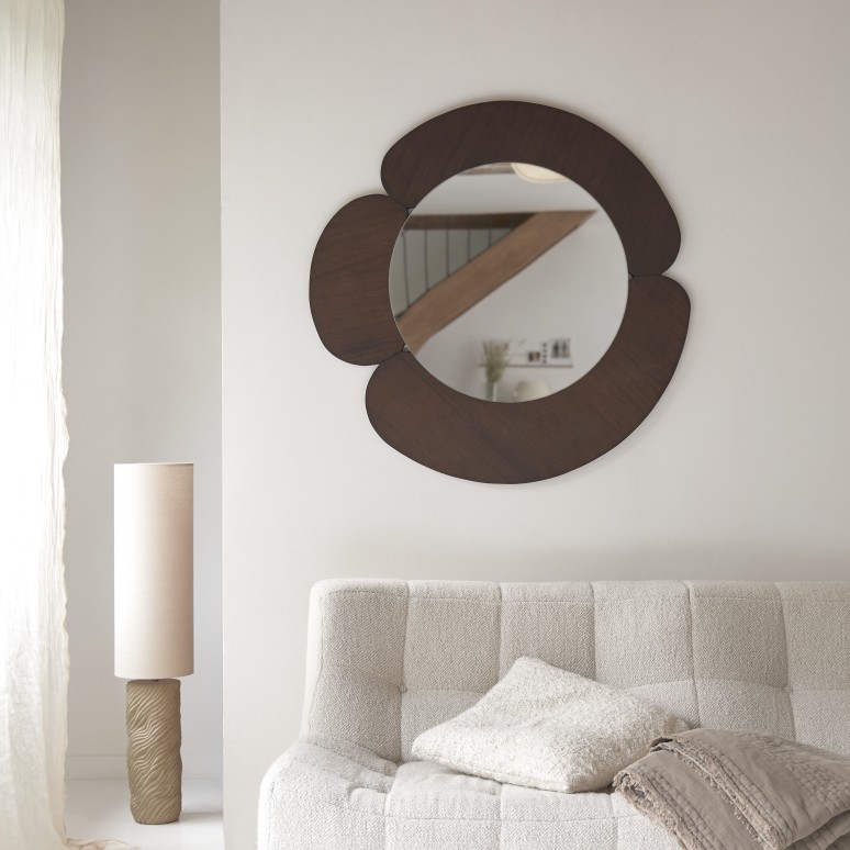 Spiegel mit dunklem Mindiholz-Rahmen 110 x 110 cm