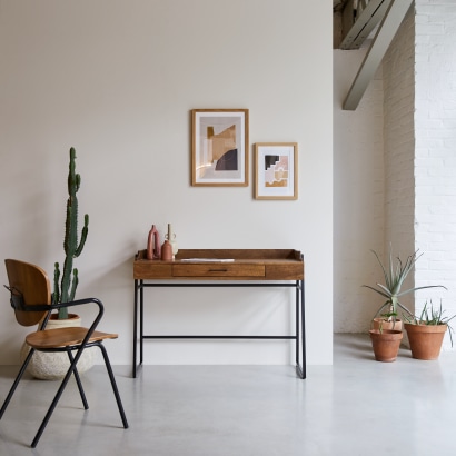 Schreibtisch aus massivem Mangoholz und Metall