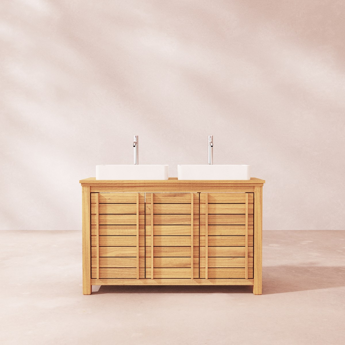 Waschtischunterschrank aus massivem Teakholz 125 cm